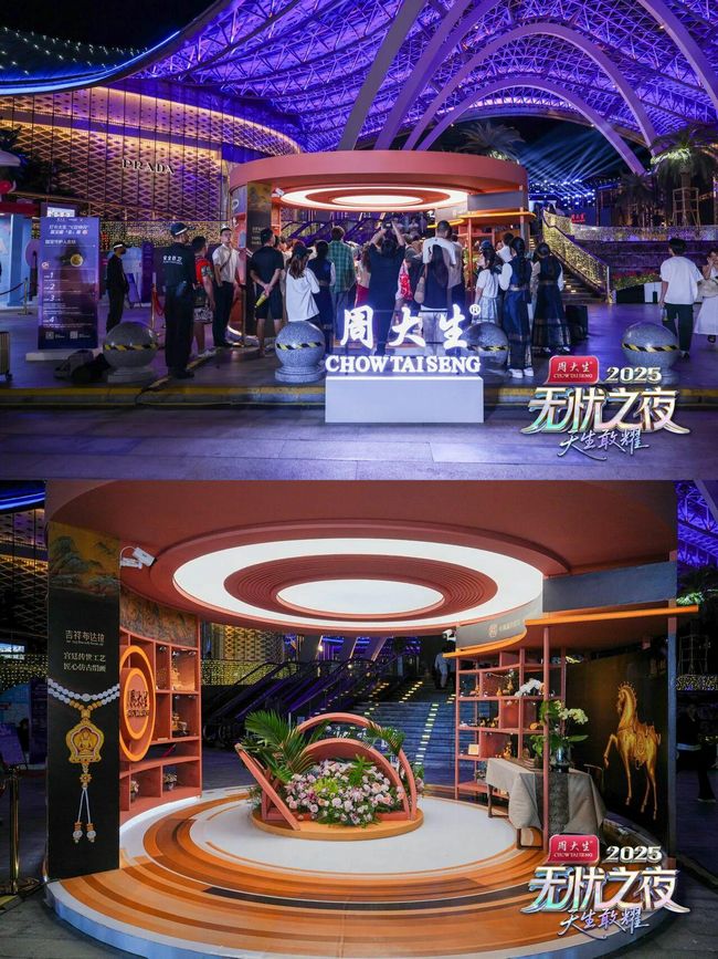作为“无忧之夜”的独家冠名商,周大生以诚意呈现多元品牌矩阵,涵盖周大生主品牌、周大生×国家宝藏、周大生大师艺术珠宝、周大生经典以及转珠阁的多款代表系列产品。璀璨珠宝陈列于精心设计的展区内,不仅为粉丝提供近距离观赏的机会,更开放试戴体验,通过沉浸式互动让参与者真切感受黄金与钻石之美,深化对周大生品牌的感知和认同。展区现场,还有众多无忧达人纷纷前来互动打卡并试戴产品,让展区的氛围更加热烈。周大生丰富的产品线精准匹配艺术、时尚、生活等领域达人的个性化风格,助力其展现独特气质。在珠宝光芒的映衬下,每位达人自信绽放,闪耀出属于自己的风采。
